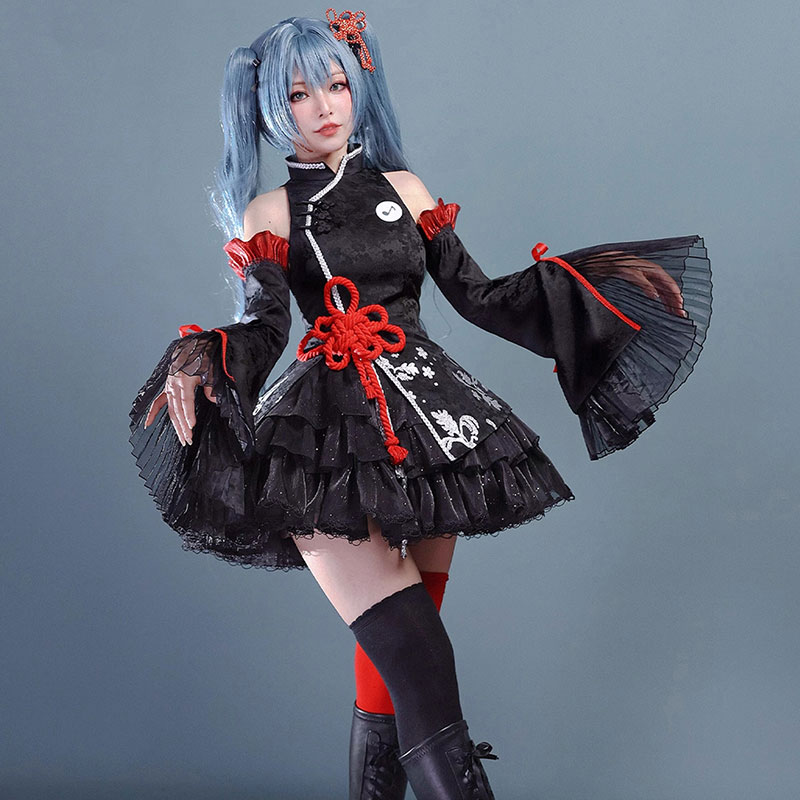 初音ミク コスプレ衣装 中華風 ロリータ オリジナル かわいい 中華 ブラック
