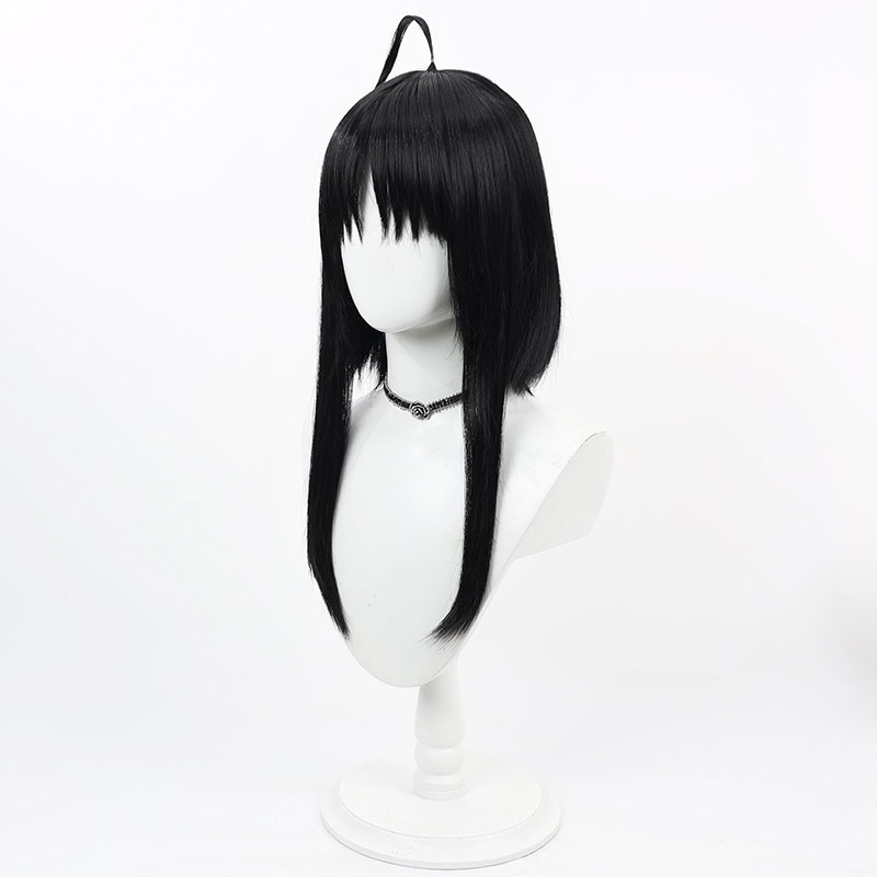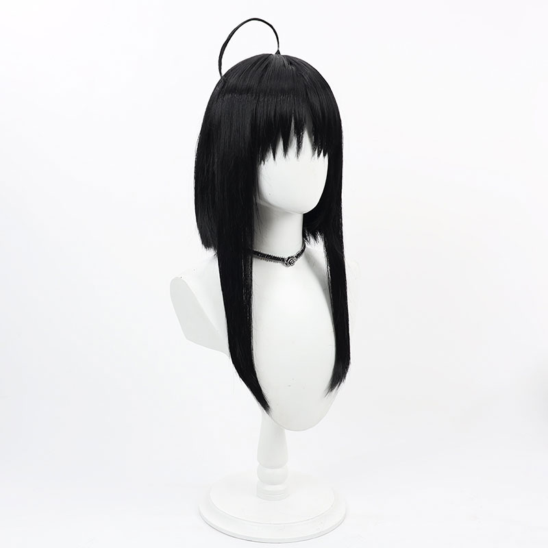 千恋*万花 常陸茉子 ウイッグ コスプレ用 あほ毛 ゲーム ロングヘア 黒髪