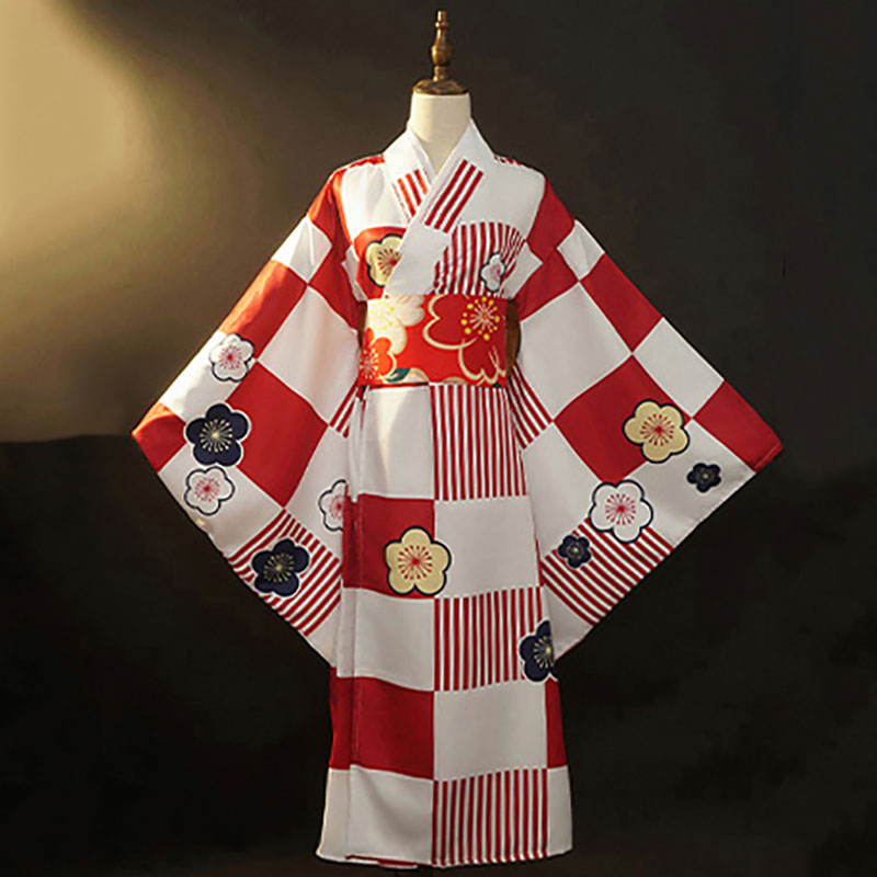 ぼっち・ざ・ろっく! 喜多郁代 コスプレ衣装 和風メイド服 喫茶店 市松模様 着物 コスチューム