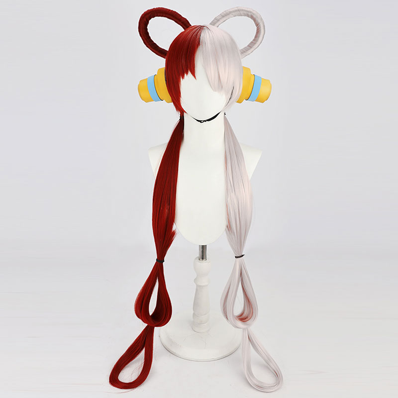 ONE PIECE ワンピース FILM RED 世界の歌姫 ウタ Uta ☆コスプレウイッグ 赤+白 コントラスト色 コスプレ道具「ヘッドホン」