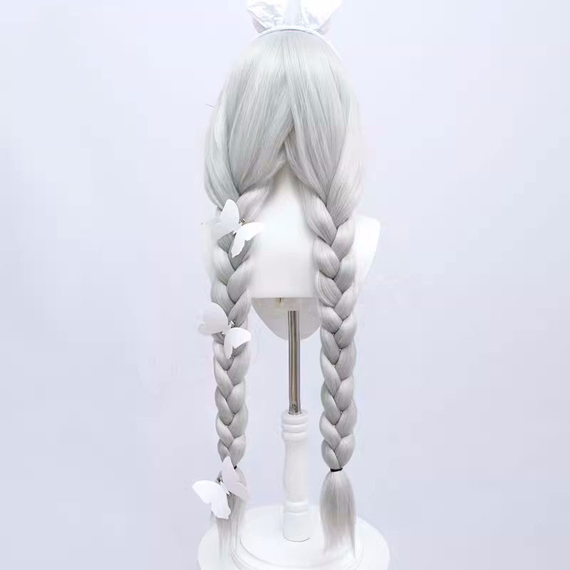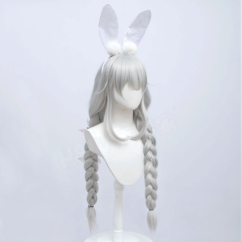 アズールレーン 三つ編み 蝶结び 髪飾り シルバーホワイト ウサギの耳 かつら コスプレウィッグ