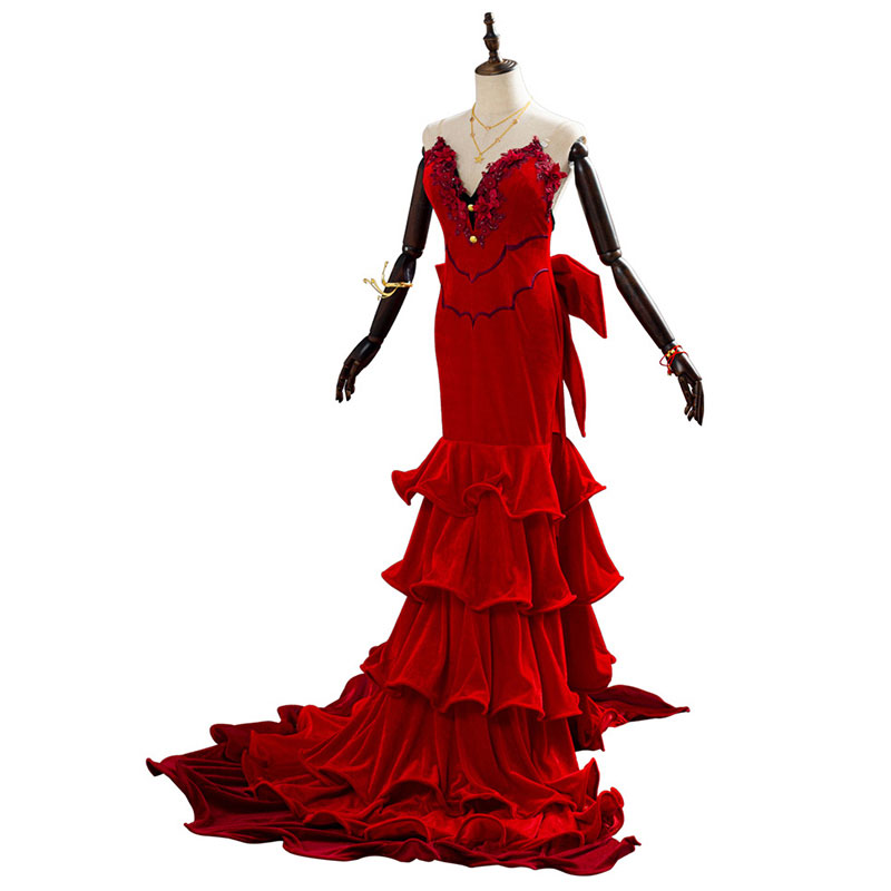 FF7 エアリス コスプレ衣装 ドレス コスチューム 赤色 ゲーム 派手 ファイナルファンタジー