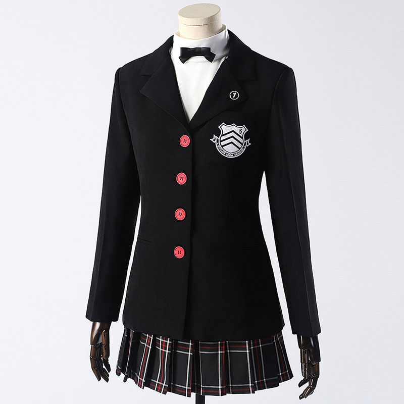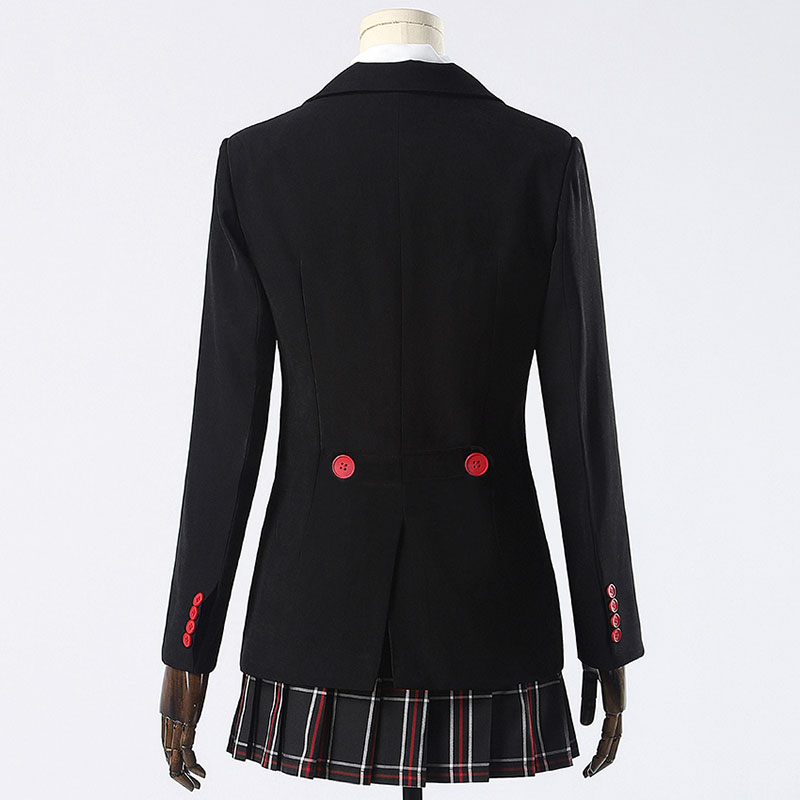 「ペルソナ5 ザ・ロイヤル」で大人気の芳澤かすみの制服を再現したコスプレ衣装です。実物はとても可愛くて、かすみの清楚さと元気さがしっかり伝わるデザインに仕上がっています。私立秀尽学園の制服風スタイルを忠実に再現するため、黒のチェック柄スカート、シルエットが綺麗な黒のジャケット、そして清潔感のある白シャツをセットにしています。